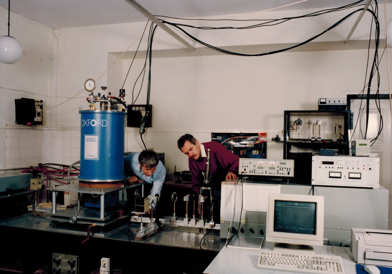 The next significant advancement of the Lab occurred after collaboration with technological laboratories in Nottingham and Copenhagen was established. In particular, purchase of a magnetic coil allowed optical measurements in external magnetic fields up to 5 Tesla (as shown in the picture above) and a new optical spectroscopy technique, photoluminescence excitation, was introduced.